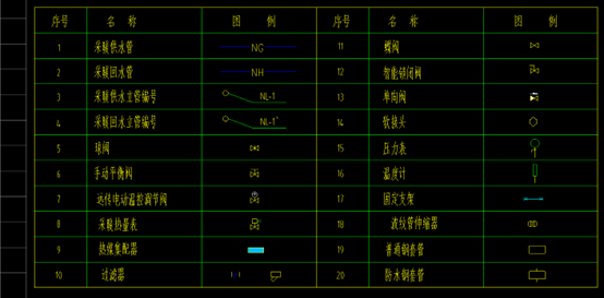 1.观察首层暖通平面图、图例和管道井大样图,其中阀门种类有远传电动温控调节阀、蝶阀、智能锁闭阀和球阀,规格为DN25。