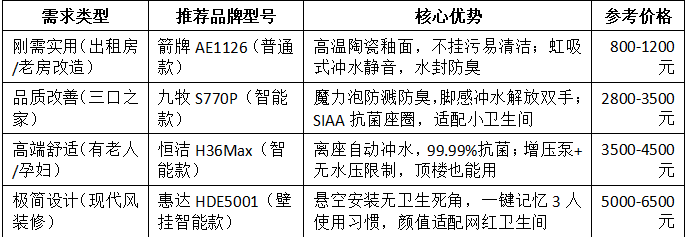 2025年国产马桶主流功能集中在“抗菌、节水、人性化”,按预算和需求分3类推荐,都是线下门店能试、售后网点多的硬通货: