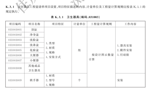 卫生器具工程量清单计量
