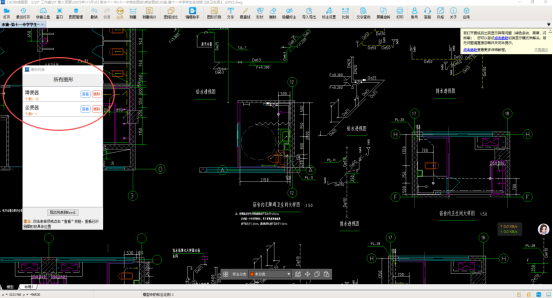 其次,选择蹲便器图例,使用CAD快速看图的图形识别功能,统计蹲便器,马桶工程量