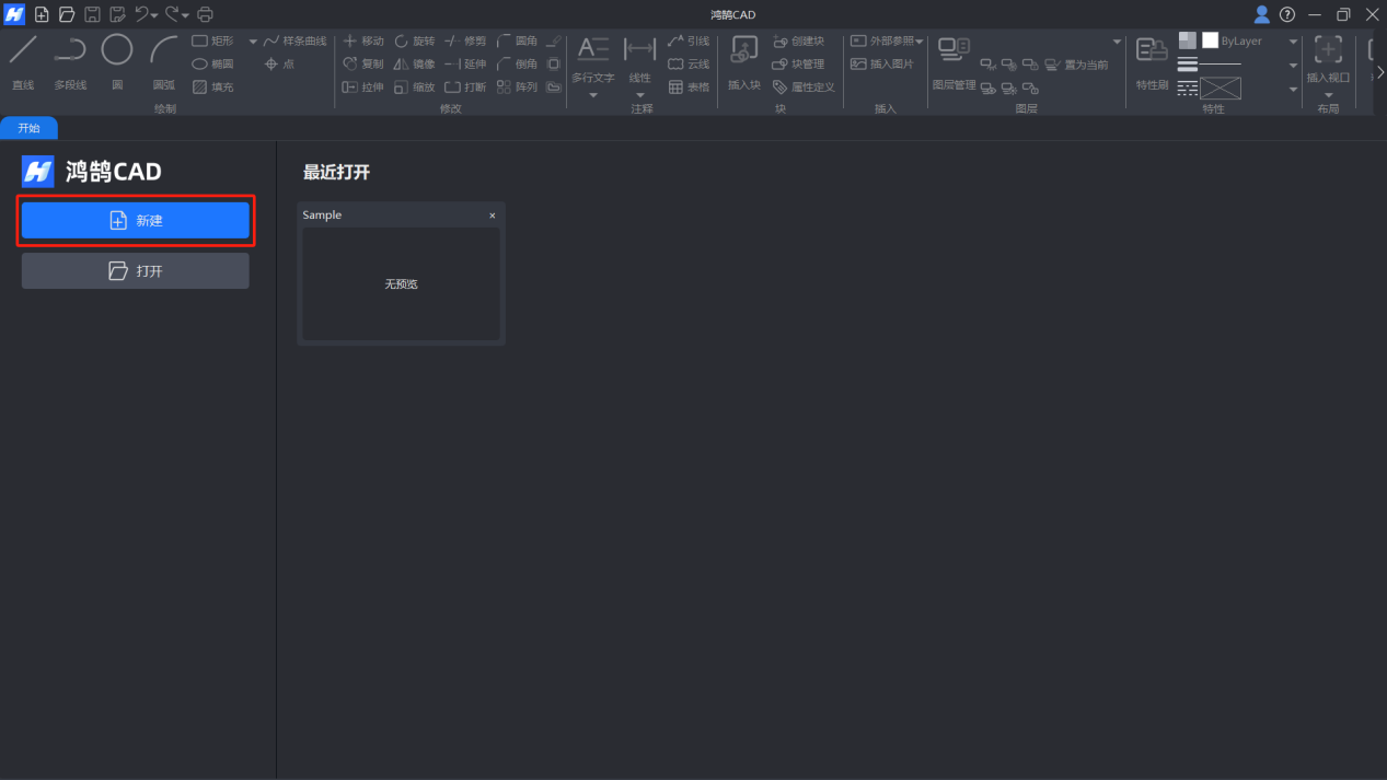 在鸿鹄CAD中,使用"新建文件"命令可以创建一个新的空白图形文件,来作为绘图工作的起点。