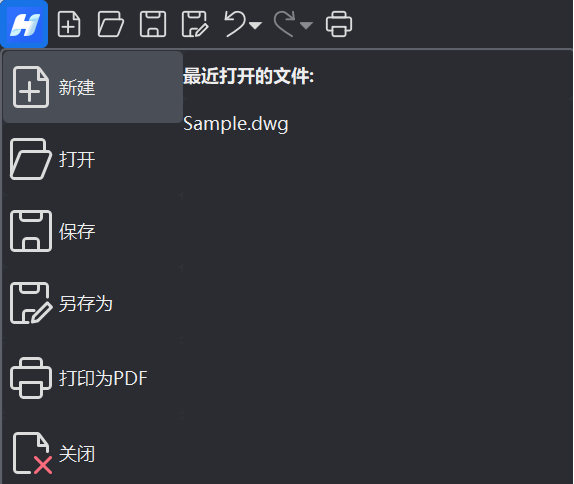 规范的文件操作与管理是保障设计数据安全、实现项目高效协作的基础,鸿鹄CAD提供了全面且便捷的文件处理功能,能够兼容多种行业标准格式,以支持完整的设计工作流程。本章节将主要介绍鸿鹄CAD中文件的新建、打开、保存、另存为、打印等基础文件操作。