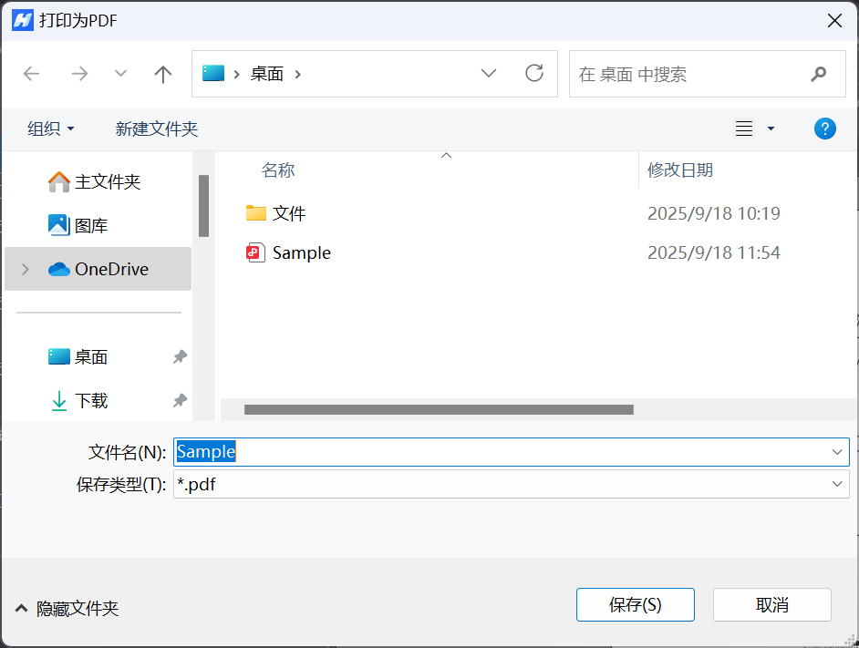 2.在对话框中输入文件名称,选择文件类型并指定文件保存位置,最后单击"保存"按钮完成操作。
