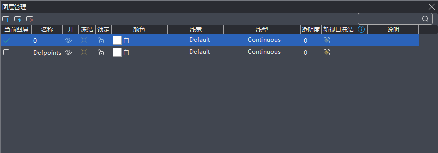 每个图形文件都至少有一个图层,名称为“0”图层,该图层既不能被删除,也不能被重新命名,如图2-2所示。