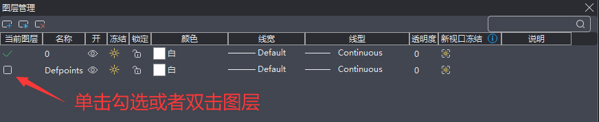 4.单击勾选“当前图层”列表中的“□”,即可将选中图层置为当前,如图2-3所示。