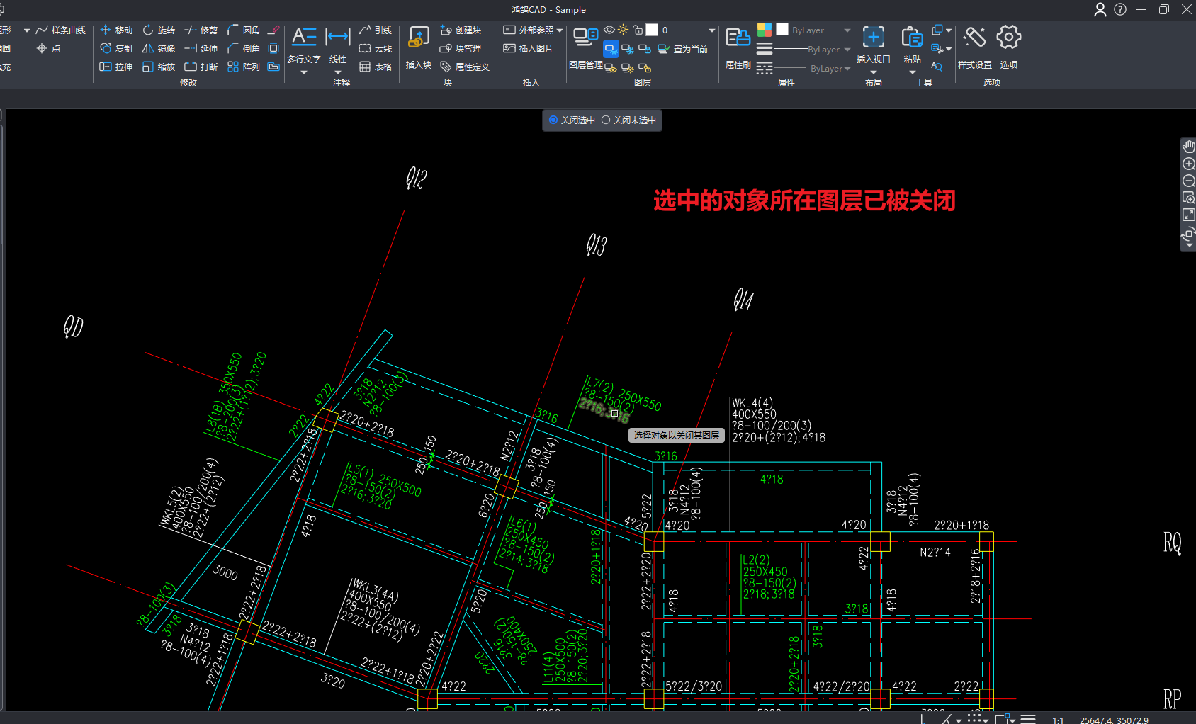点击“打开所有图层”按钮后,该图纸中所有处于“关闭”状态的图层将会被打开。