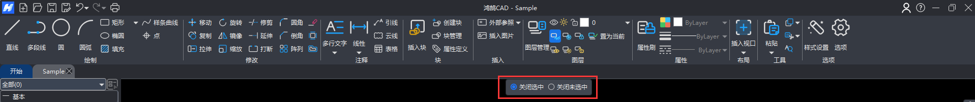 方式一:顶部工具栏“图层”功能区中点击“关闭图层”