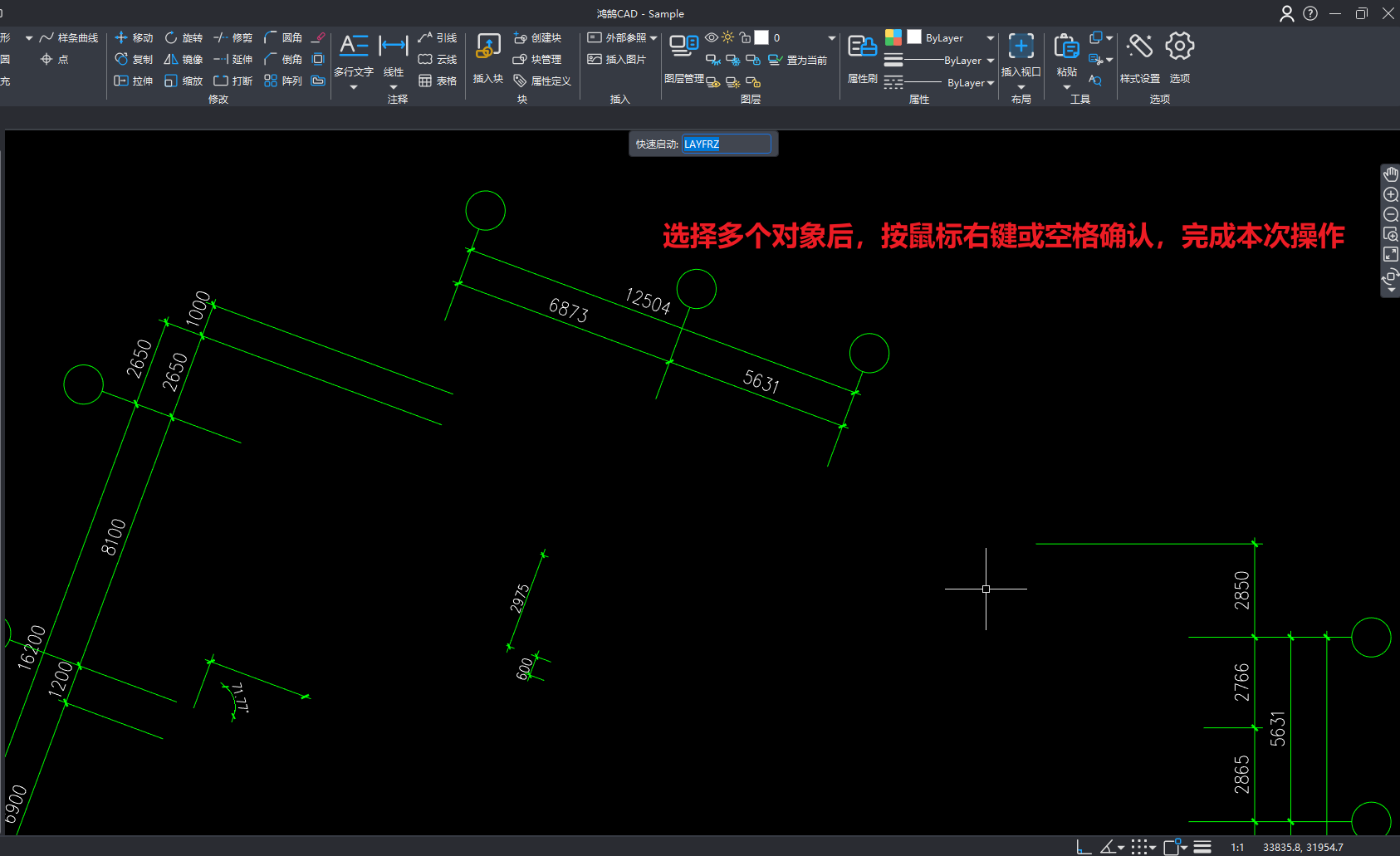 方式二:顶部中间“快速启动”命令区中输入“LAYFRZ”或“冻结图层”,如图2-19所示。