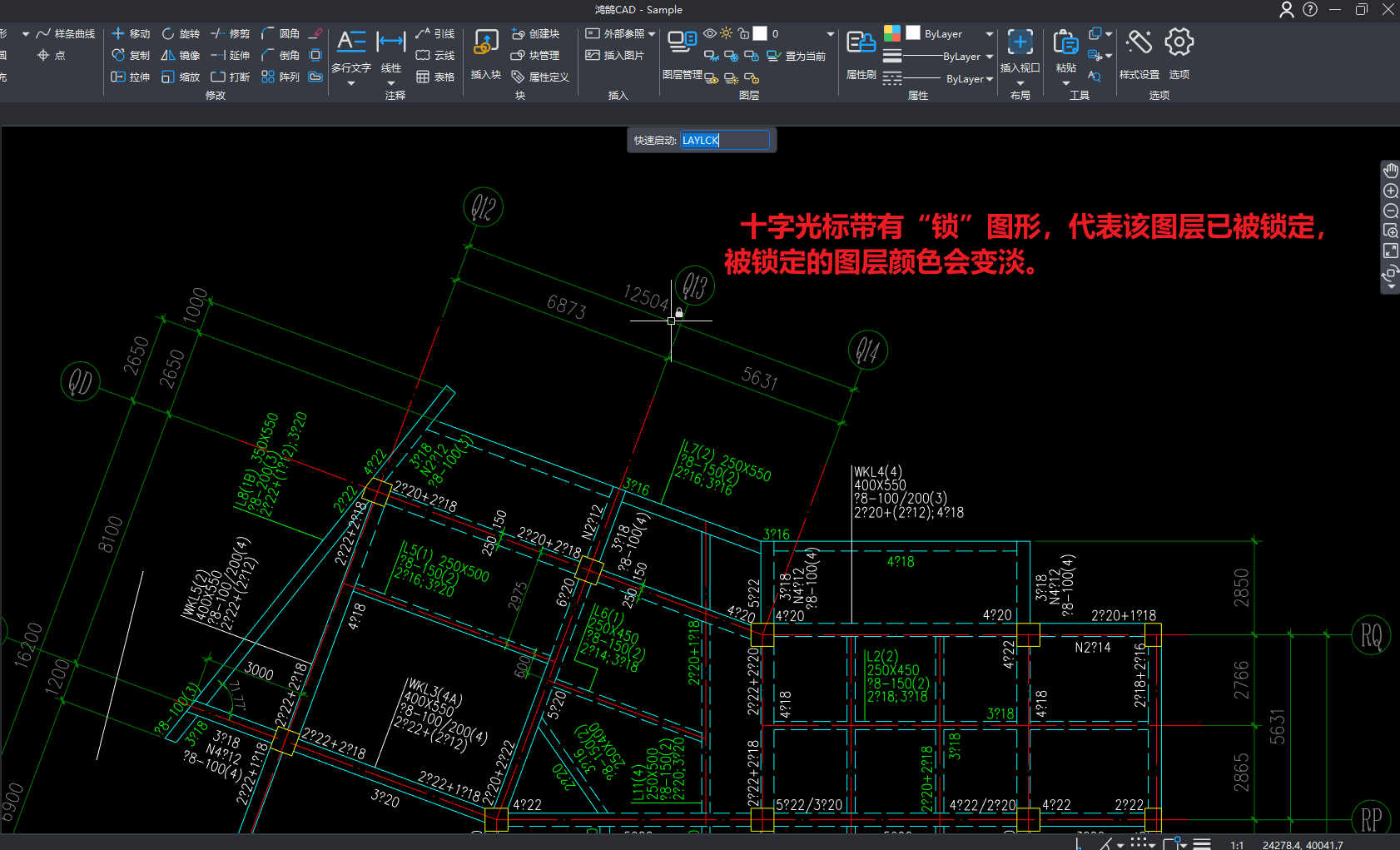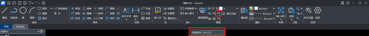 方式二:顶部中间“快速启动”命令区中输入“LAYLCK”或“锁定图层”,如图2-26所示。