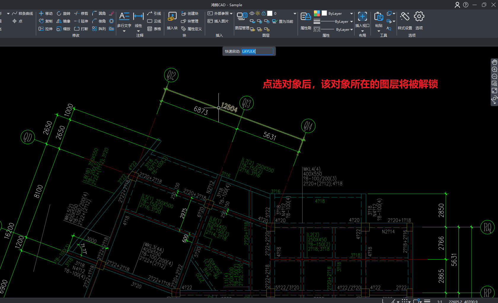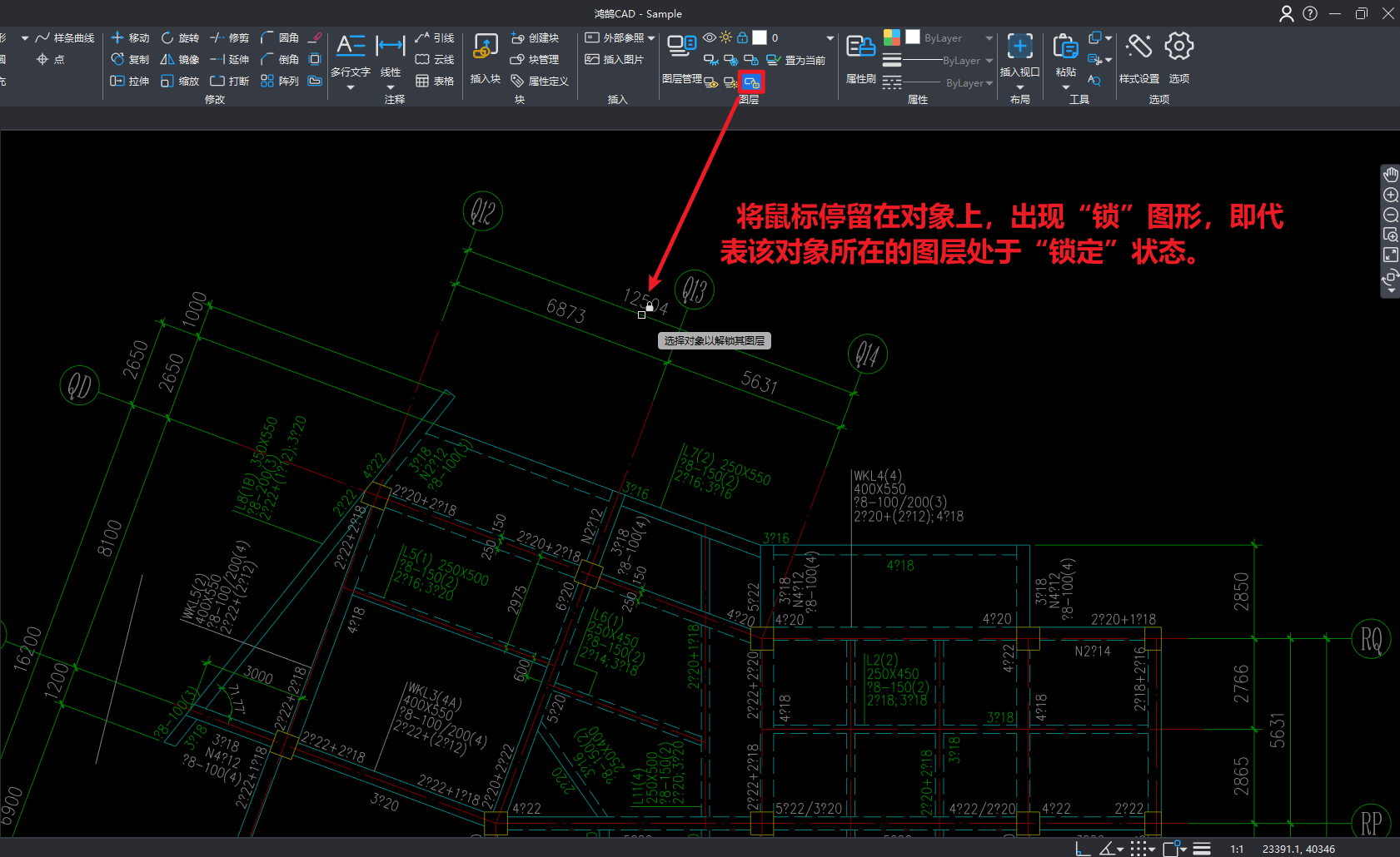 (1)使用“解锁图层”功能后,每次只能选择一个对象所在的图层进行解锁。若想解锁多个对象所在的图层,则需要多次重复“解锁图层”命令。