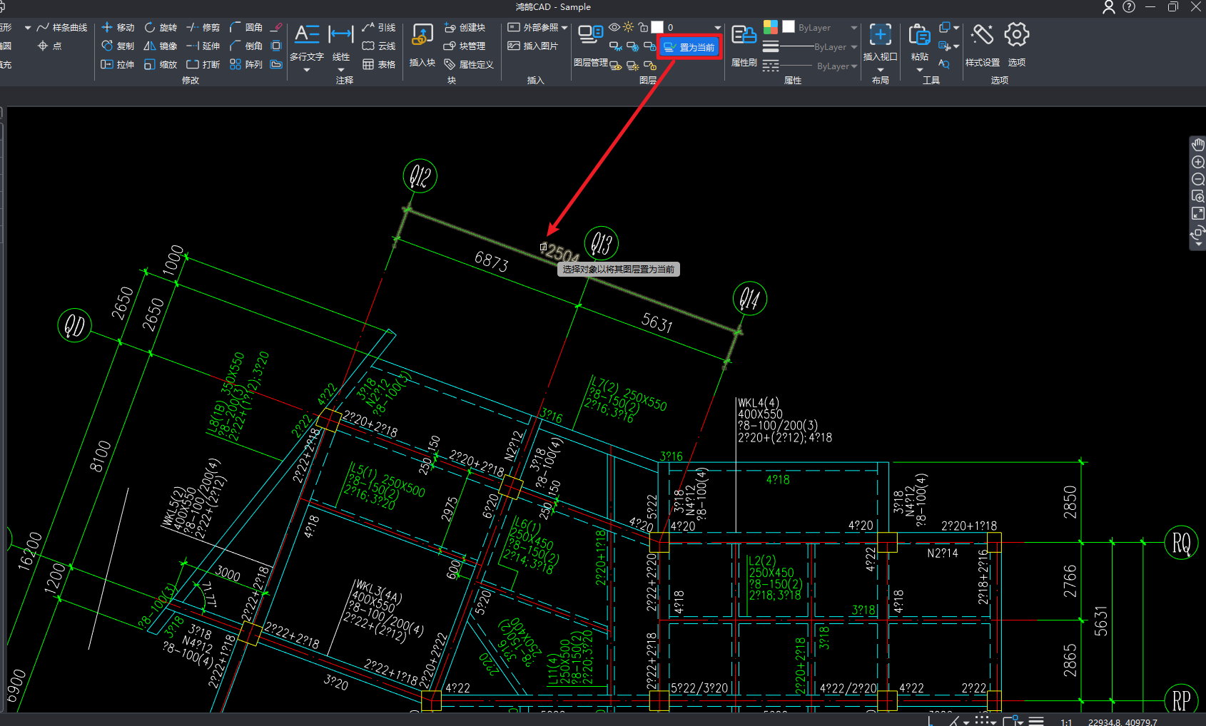 方式一:顶部工具栏“图层”功能区中点击“置为当前”