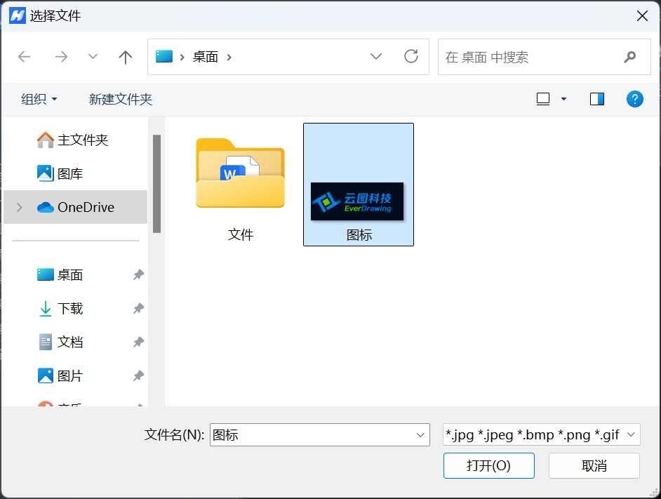 注意:支持插入的光栅图片文件包括.jpg、.jepg、.png、.bmp、.gif、.tif、.tiff。