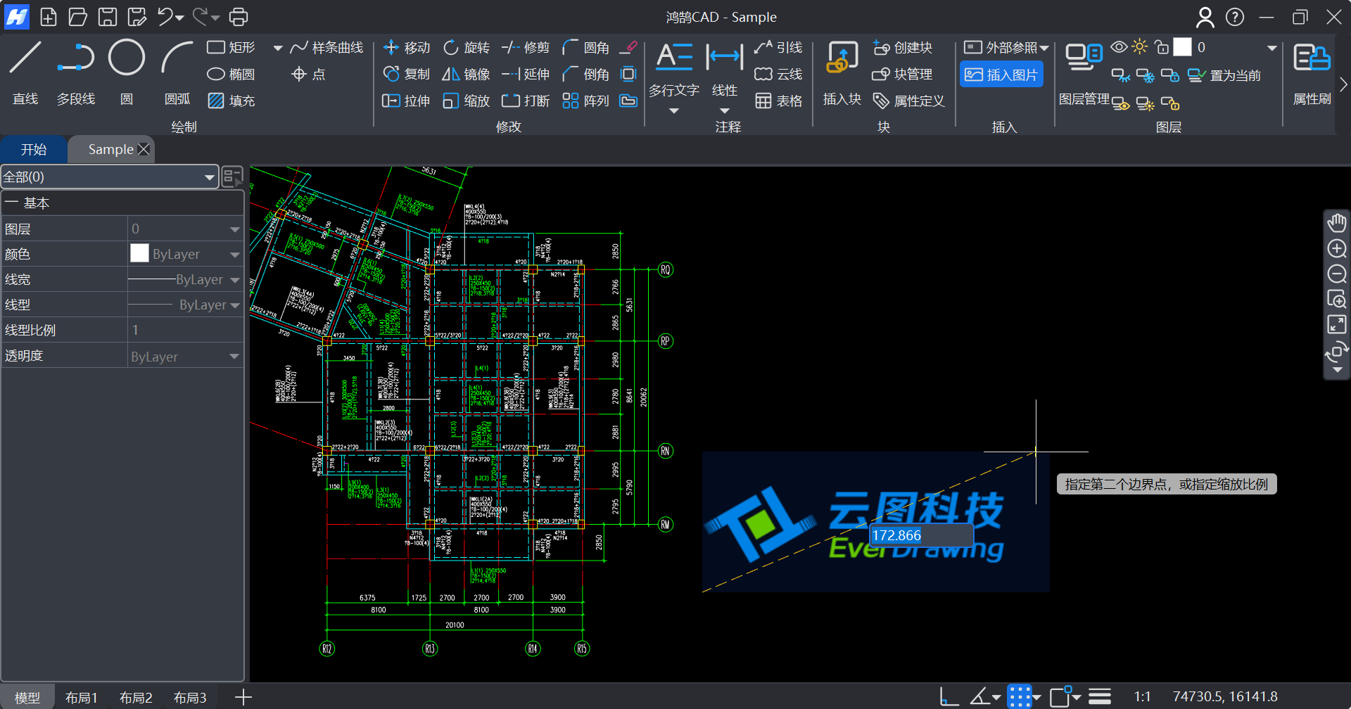 2、打开图片文件后,首先指定第一个边界点。可以直接在绘图区的目标位置单击鼠标或在动态输入框输入坐标。随后移动鼠标来确定图像尺寸,此时绘图区会实时显示放置预览。您可以再次单击来最终确定图像的对角点,或直接在动态输入框输入缩放比例的比例因子并按回车键完成图片插入,如图9-8所示。