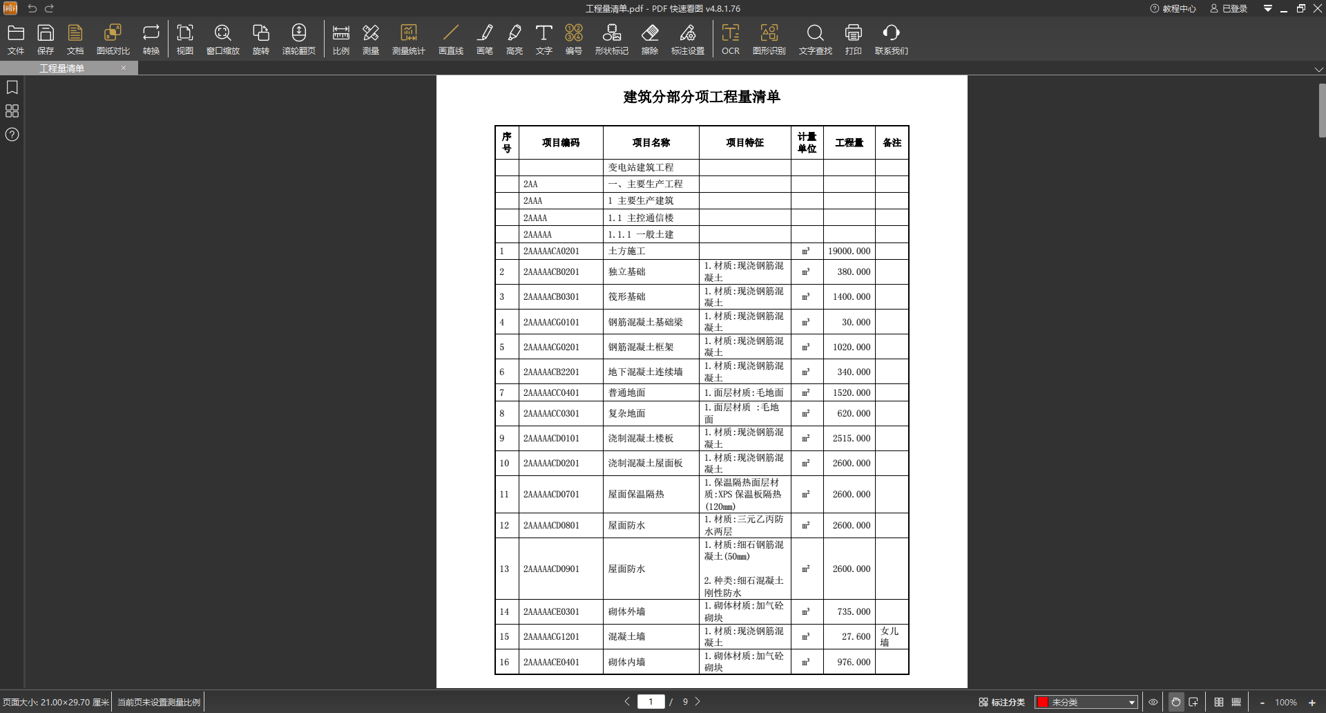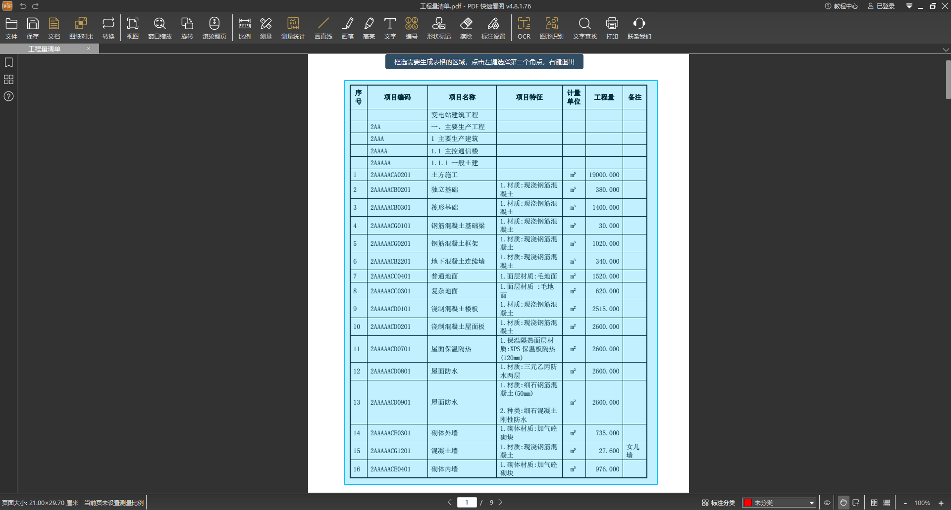 下面,我们通过一个建筑分部分项工程量清单表格提取的完整操作流程来演示一下: