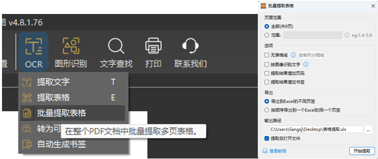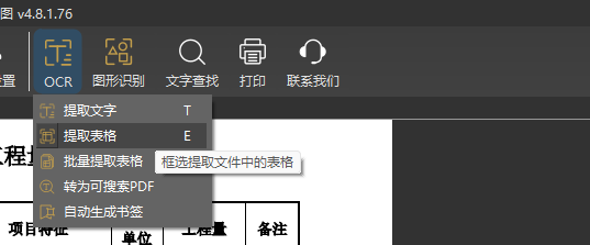 点击顶部菜单栏的 「提取表格」(或按快捷键E)功能按钮,进入提取状态。