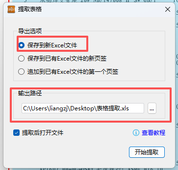 导出选项:默认保存到新Excel文件。