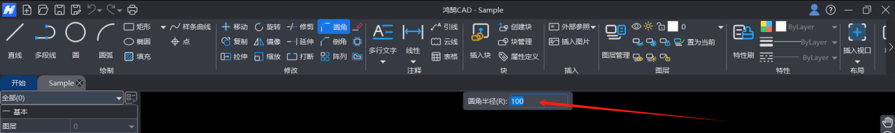 1.执行“圆角”命令后,系统会在顶部的动态输入框中提示设置半径。直接输入期望的圆角半径值,然后按回车键确认。如图4-58所示。系统会记住您上次使用的半径值,在下次执行命令时作为默认值。