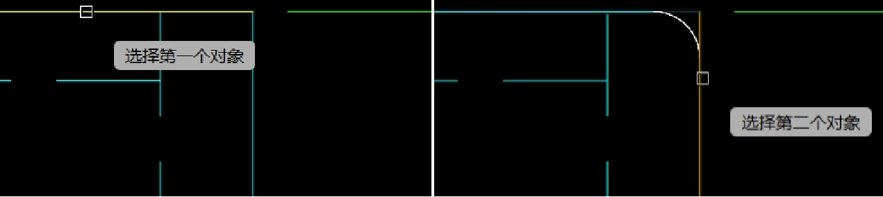 2.设置完半径后,根据命令行提示,依次用鼠标左键点选需要进行圆角处理的两条直线。选择第二条线后,系统将自动创建圆角并完成修剪,操作结束。如图4-59所示。