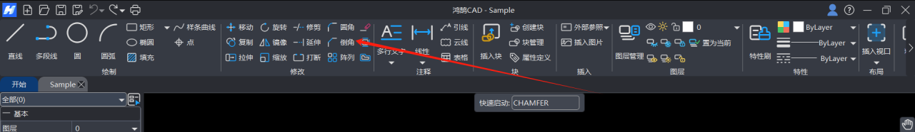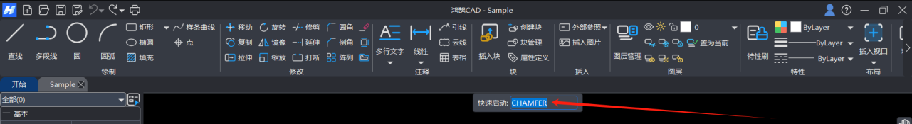 方式二:顶部中间“快速启动”命令区输入“CHAMFER”或者“倒角”,如图4-61所示。