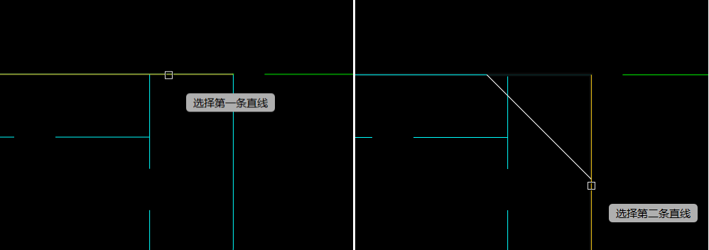 4.设置好所有参数后,根据命令行提示,依次用鼠标左键点选需要进行倒角处理的两条直线。在选择第二条直线后,系统将根据您设定的参数,自动创建倒角并完成修剪。如图4-63所示。