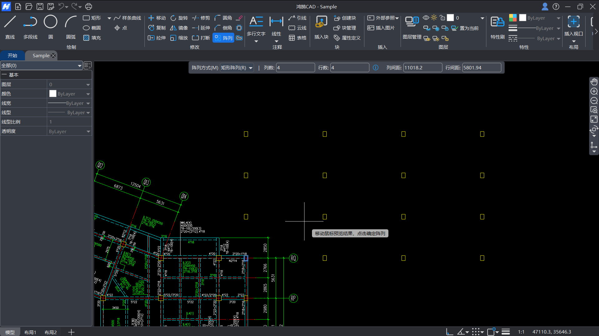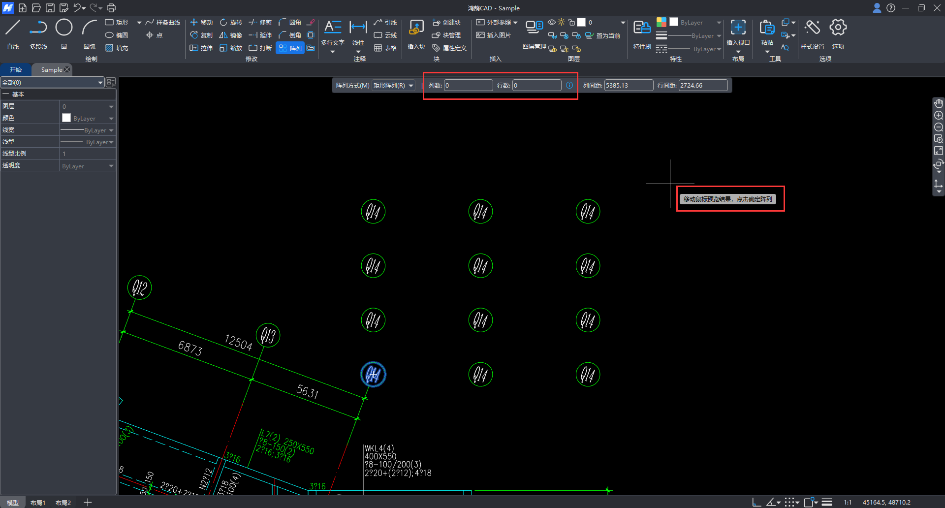 3. 当“行数”和“列数”都为0时,选择对象后移动鼠标,系统会根据“列间距”和“行间距”自动计算行/列数并展示预览结果,点击鼠标左键可进行确定,如图4-69所示。