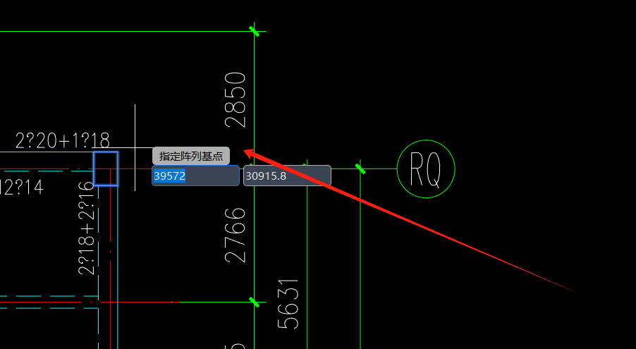 2.参数锁定后,根据命令行提示,在绘图区用鼠标左键单击或在动态输入框输入坐标,指定阵列基点。如图4-73所示。