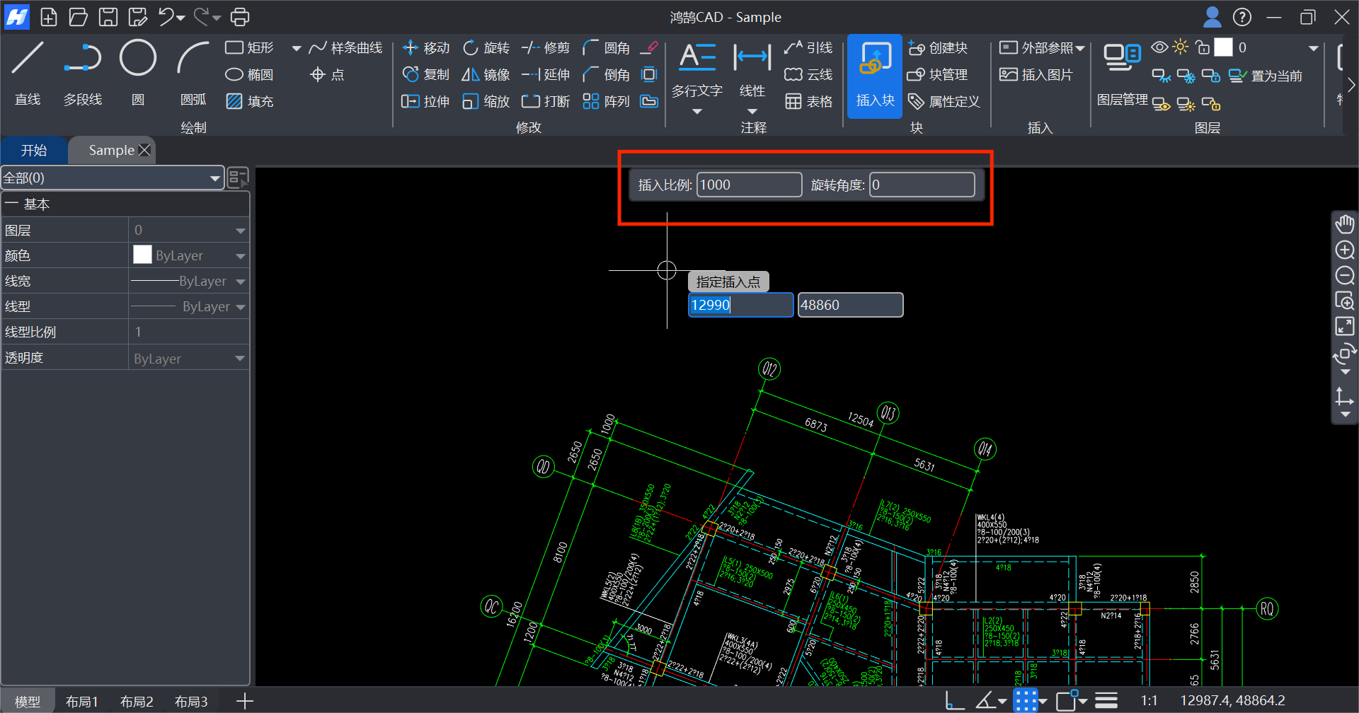 注意:同一个图块可以被多次插入到图纸的不同位置。所有插入的实例都链接到同一个块定义,当块定义被编辑后,所有实例会同步更新。