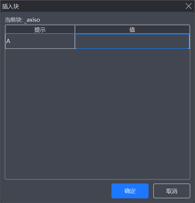 4.完成插入点的指定后,若该图块含有可变的属性,系统会自动弹出属性编辑对话框,如图6-6所示。可以在此修改属性值,修改完毕后点击“确定”。若图块不含可编辑属性,则直接完成插入。