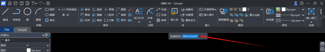 方式二:顶部中间“快速启动”命令区输入“DIMJOGGED”或者“折弯”,如图7-24所示。