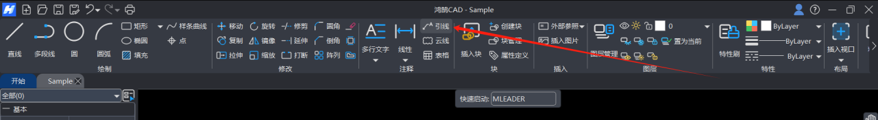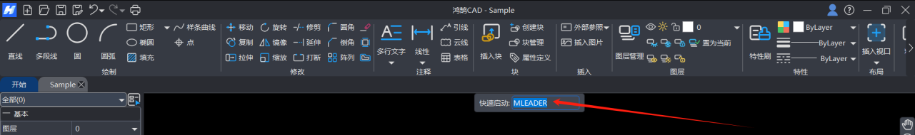 方式二:顶部中间“快速启动”命令区输入“MLEADER”或者“引线”,如图7-30所示。