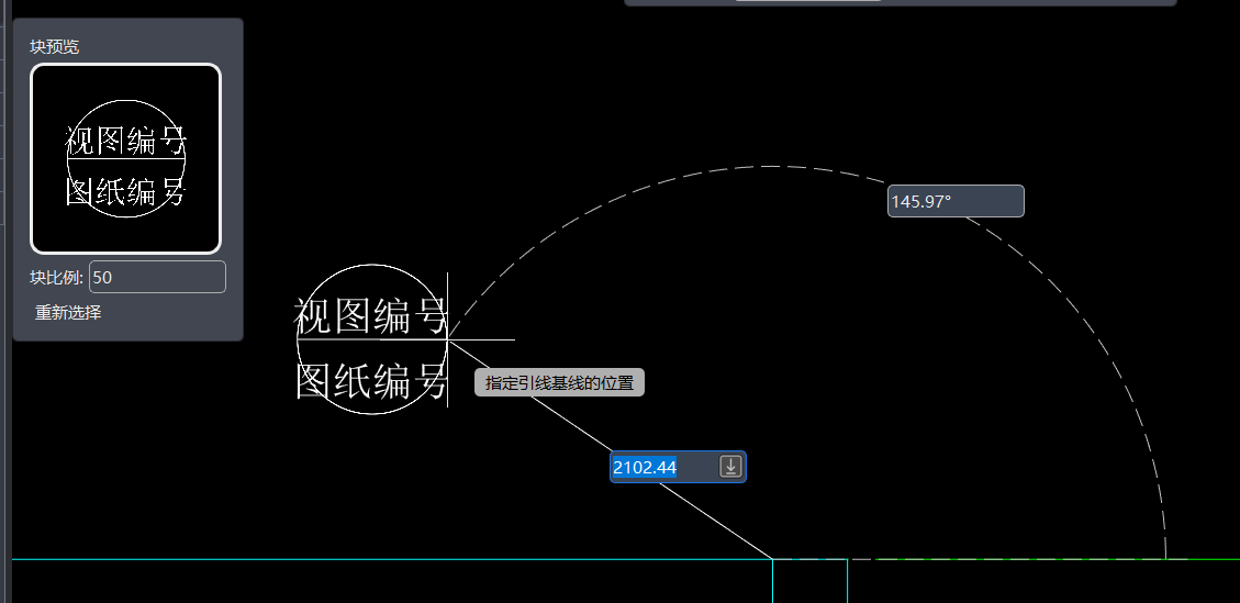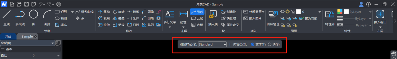 2. 在顶部中间的动态输入框中选择“引线样式”,将“内容类型”设置为“块(B)”