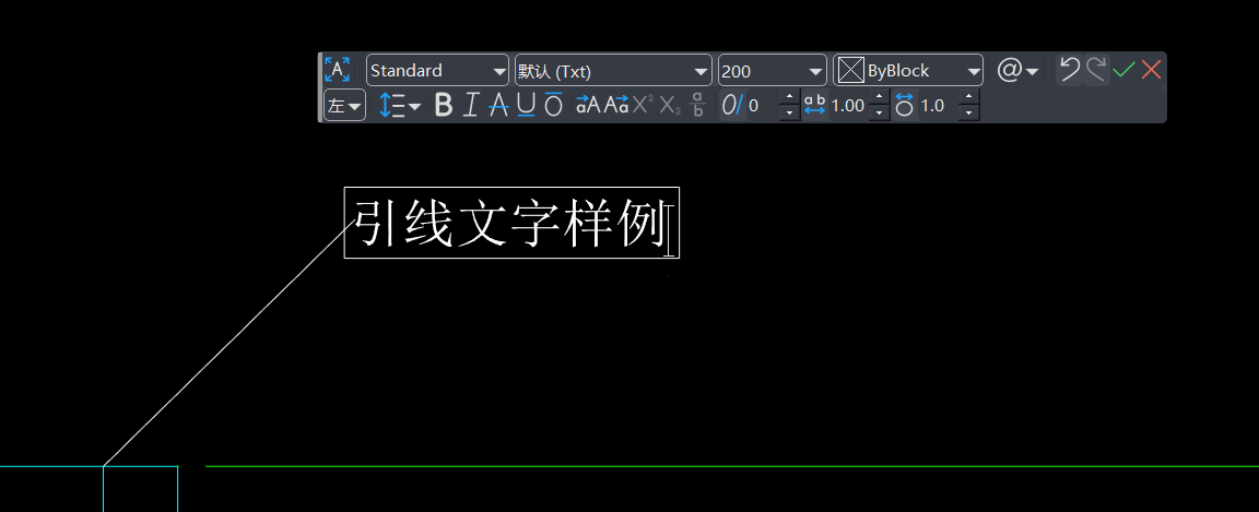 4. 移动光标,在合适的位置再次单击以指定引线的结束点,此处将是文字的插入基点;