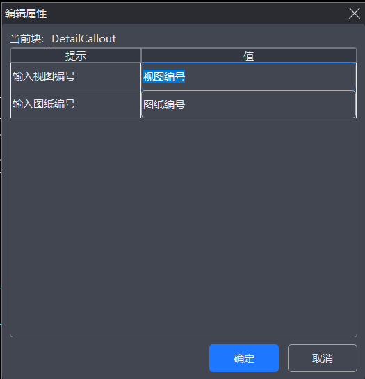 6. 指定引线的结束点后,系统弹出“编辑属性”对话框,如图7-35所示。根据提示修改块的值,点击确定后完成带块引线的创建。