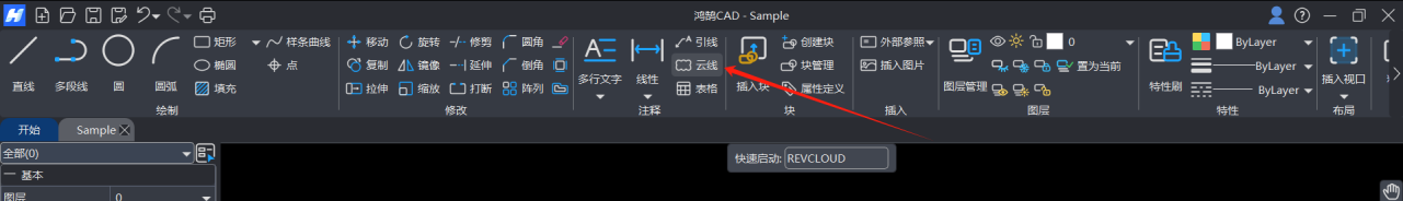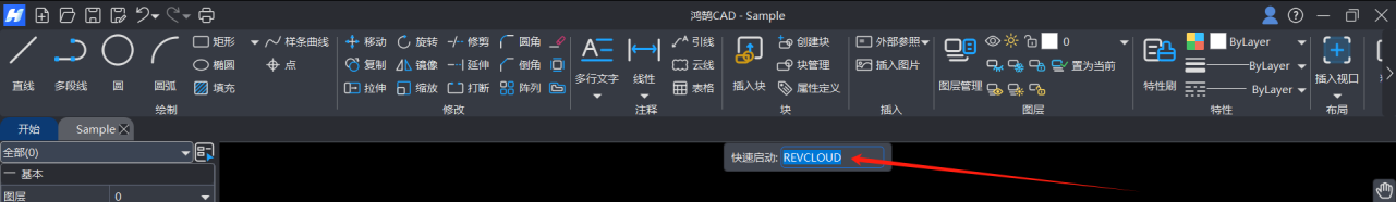 方式二:顶部中间“快速启动”命令区输入“REVCLOUD”或者“云线”,如图7-37所示。