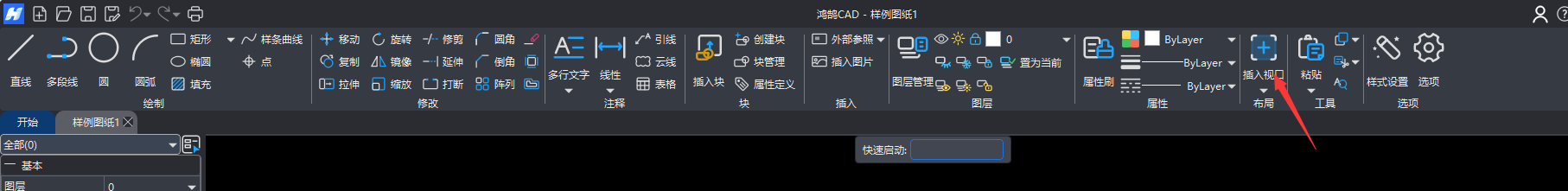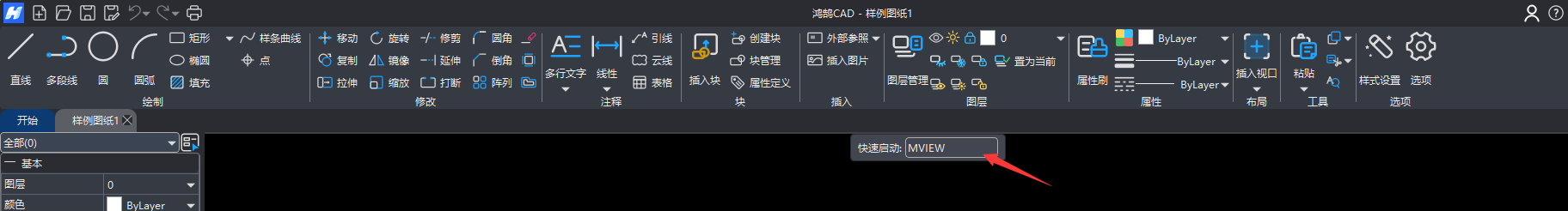 方式二:顶部中间“快速启动”命令区输入“MVIEW”或者“MV”或者“插入视口”,如图8-2所示
