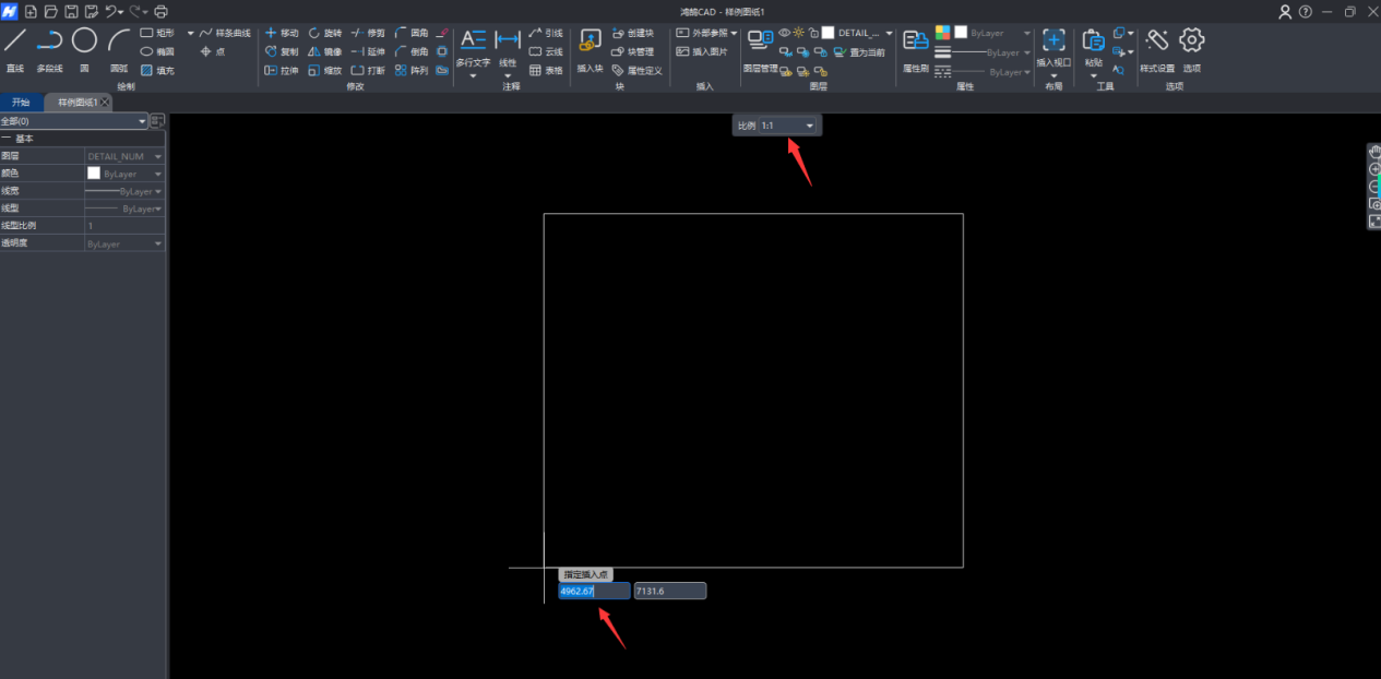 方式二:点击“比例”输入框,输入图纸所需比例,回车确认。如图8-13所示。