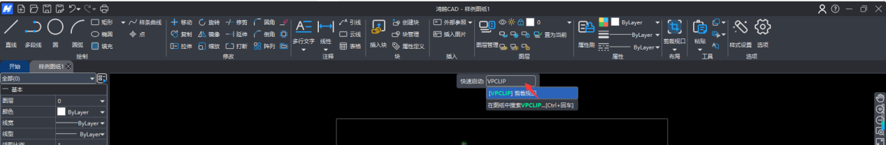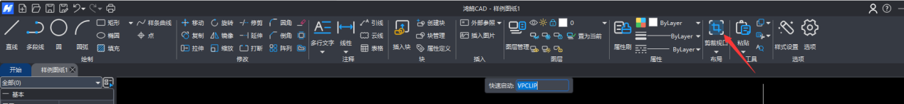方式二:顶部中间“快速启动”命令区输入“VPCLIP”或者“V”或者“剪裁视口”,如图8-6所示。