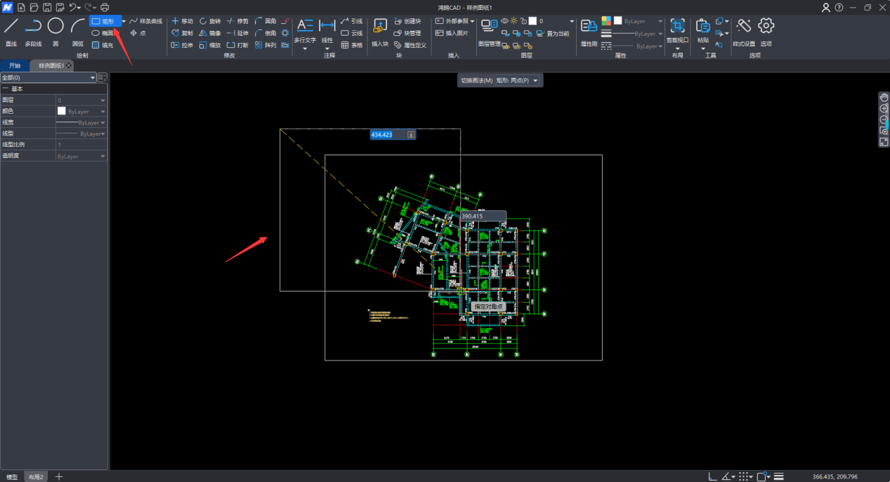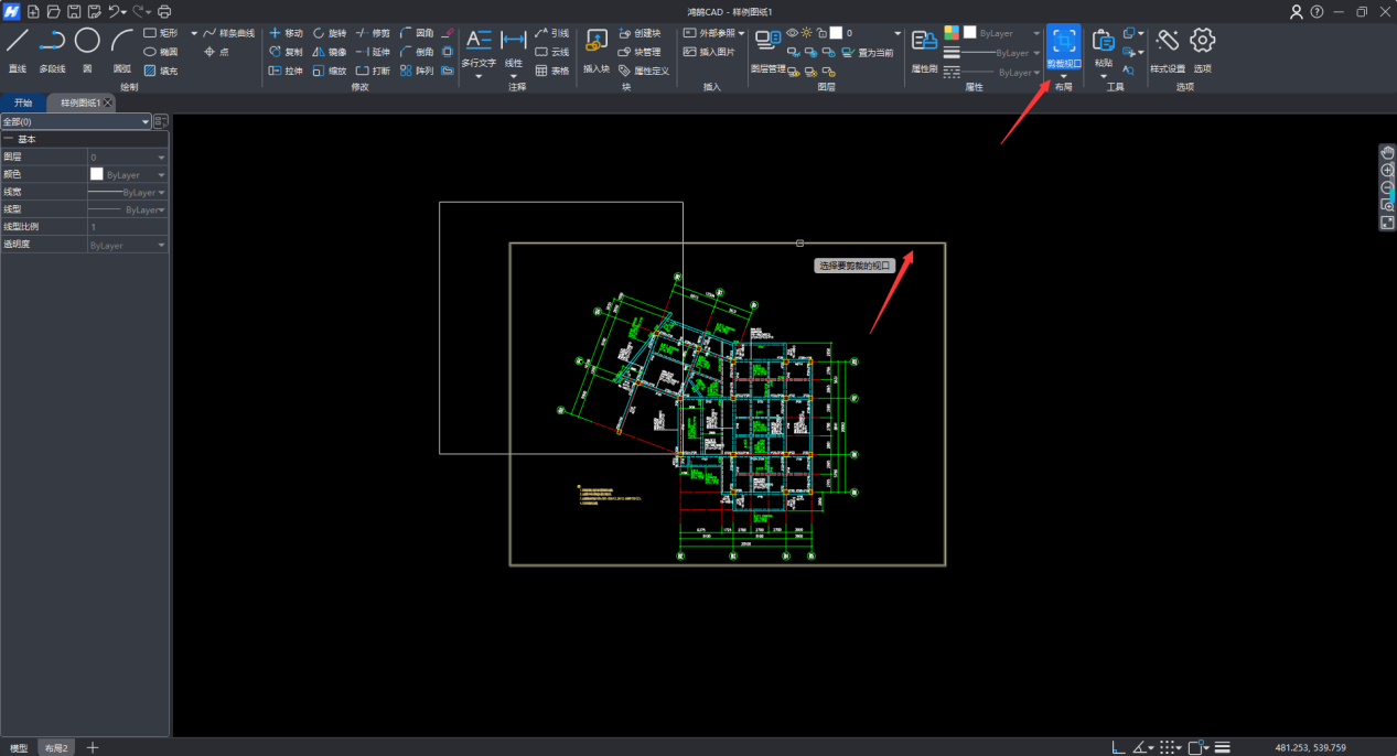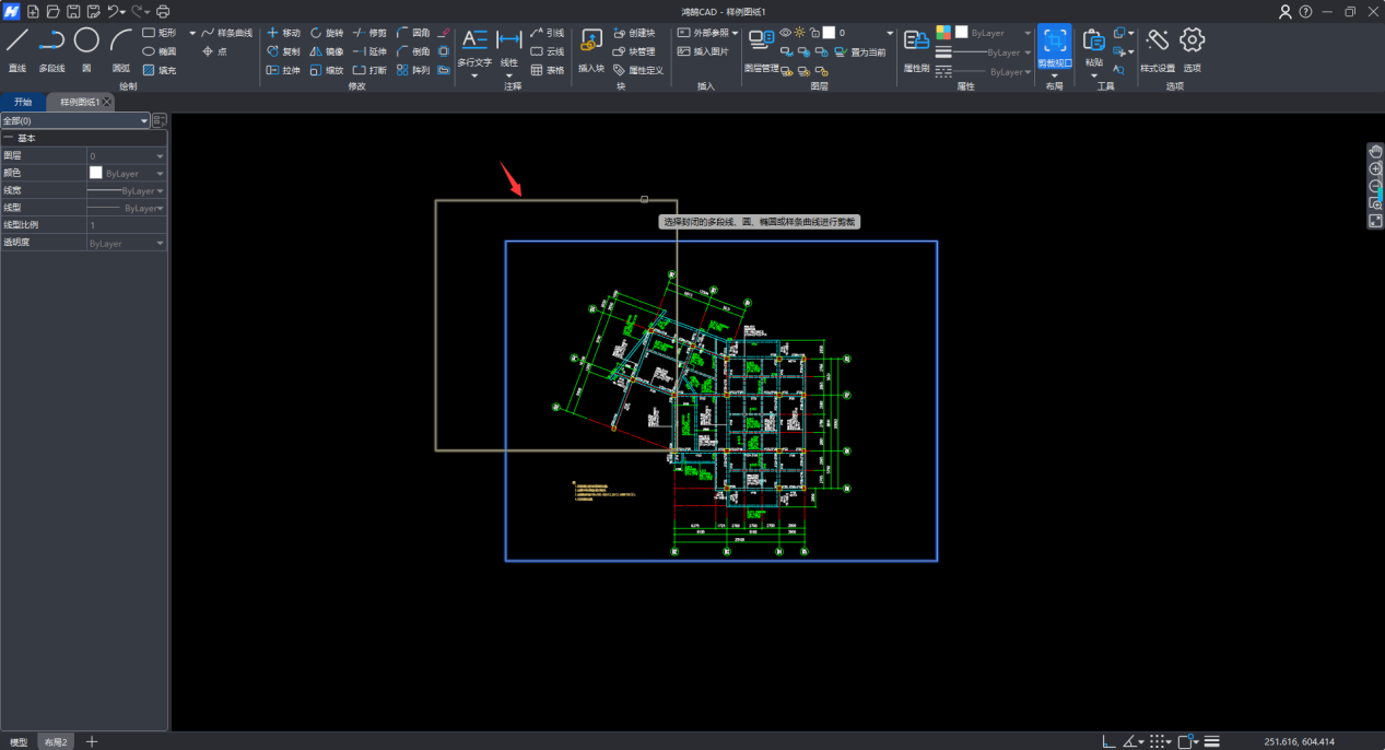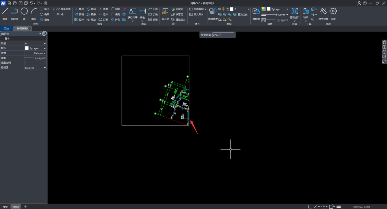 在鸿鹄CAD中,此命令用于剪裁布局视口对象并重塑视口边界的形状。您可以选择封闭的多段线、圆、椭圆或样条曲线进行剪裁,创建新边界。新边界不会修剪旧边界,而是会重新定义边界。