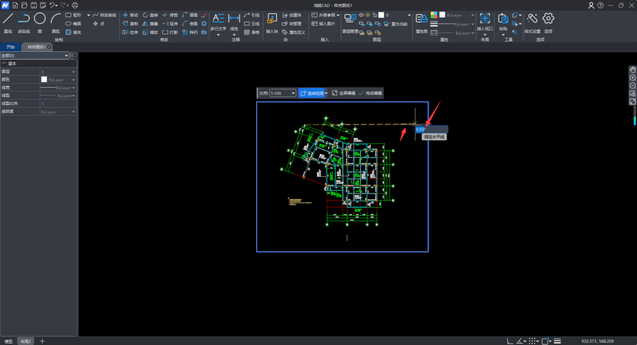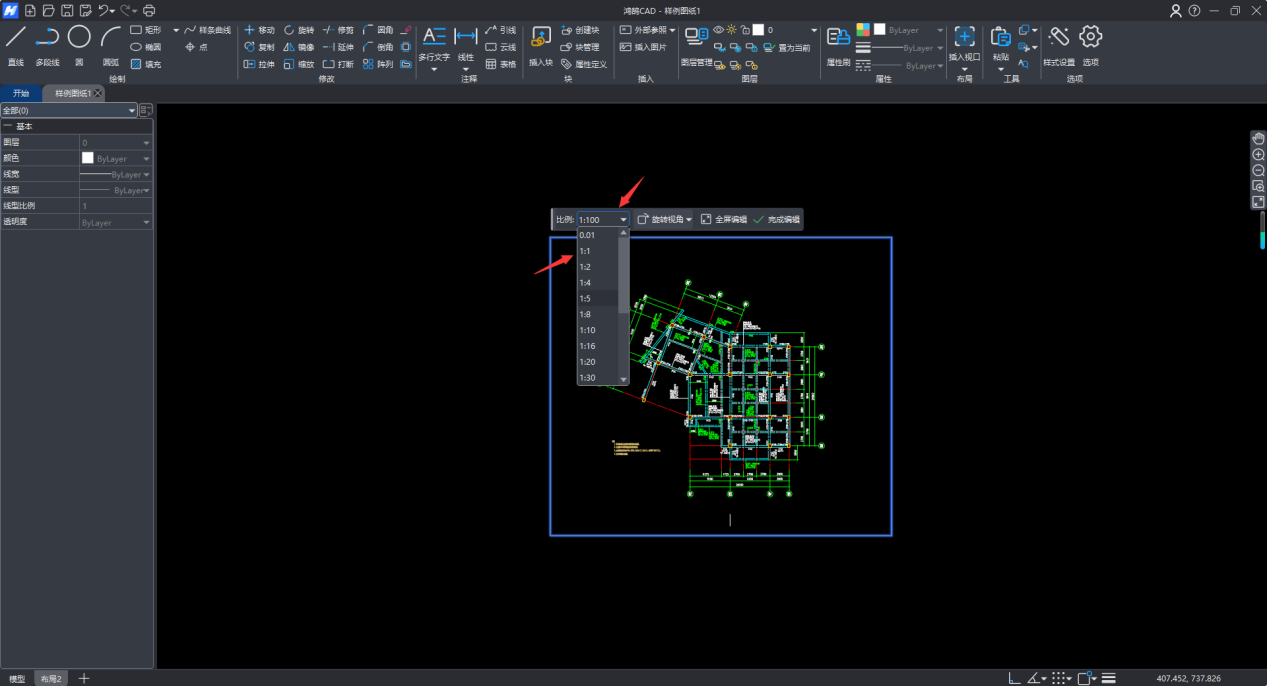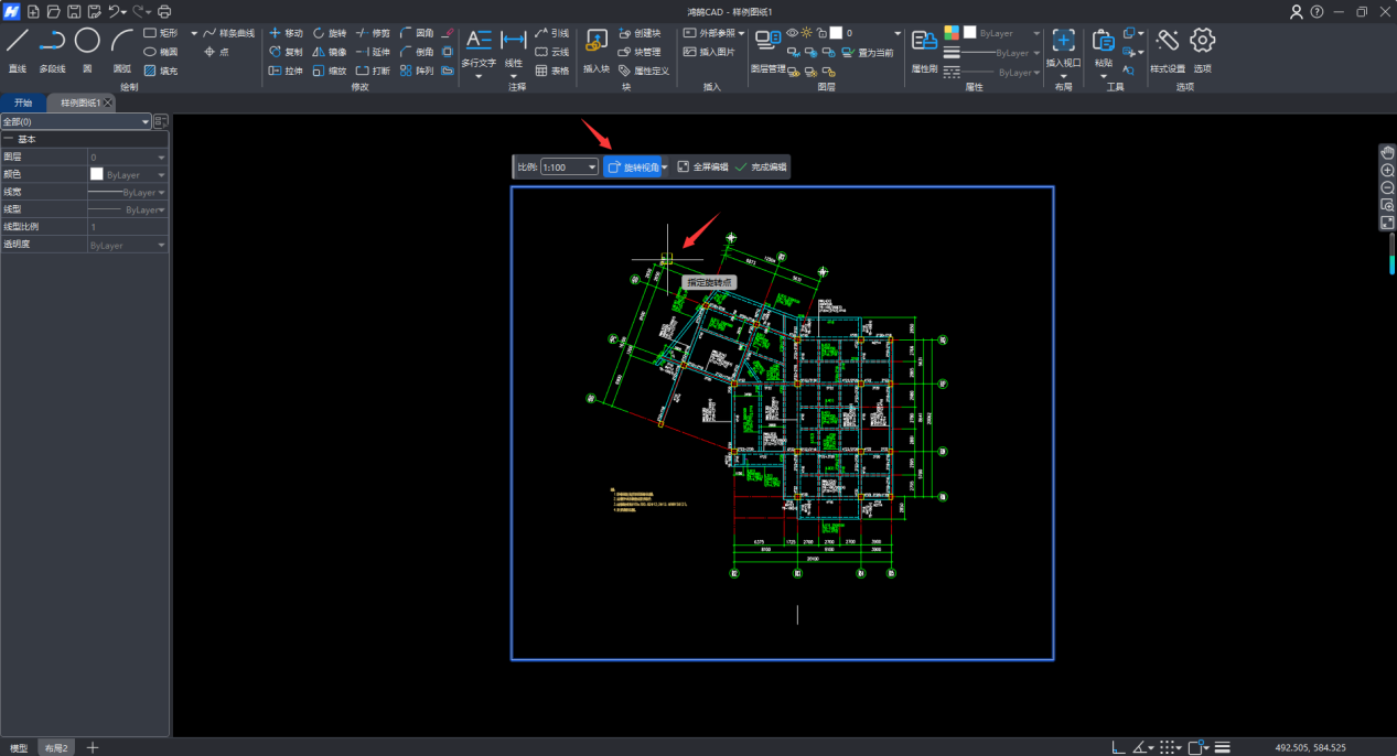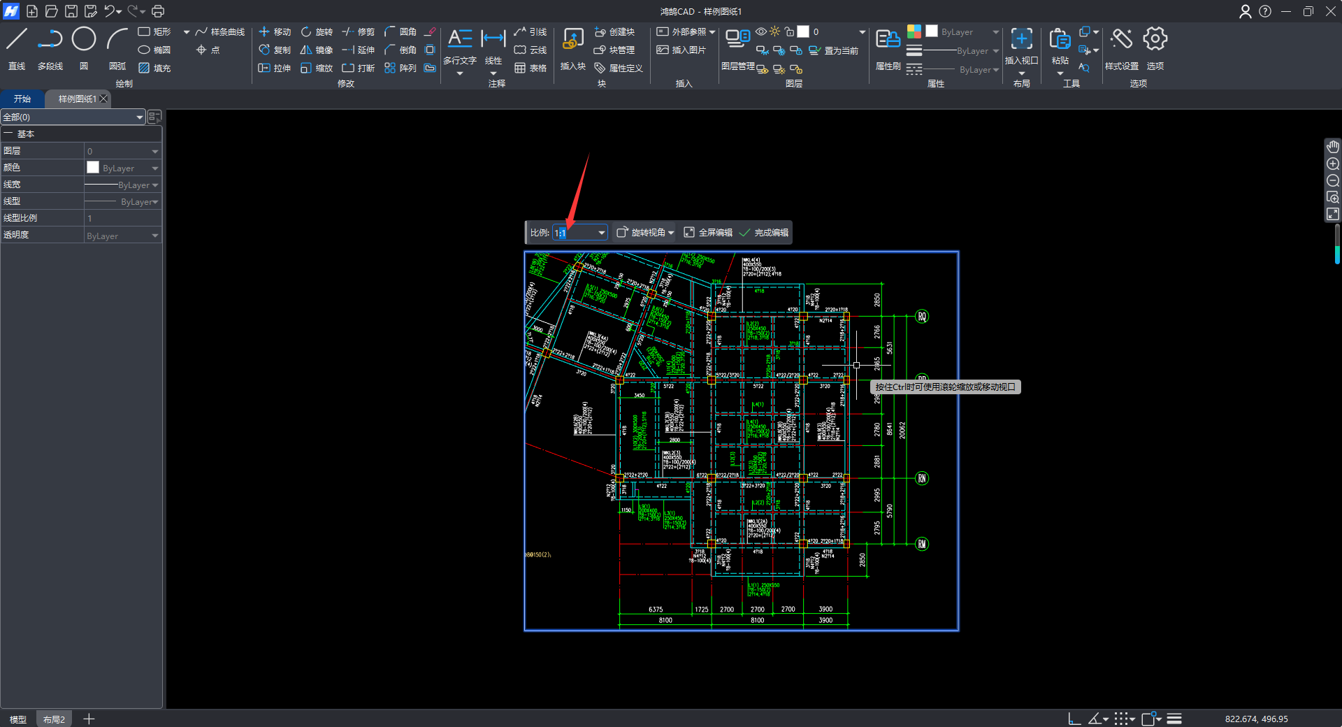 在鸿鹄CAD中,此命令用于调整视口的属性。您可以快速调整视口的比例、移动、旋转和缩放视口,也可以全屏编辑视口。