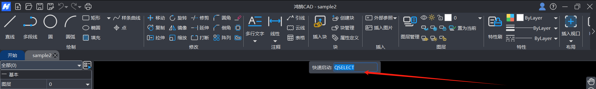 当图纸中的对象数量众多且类型复杂时,手动逐一选择对象非常耗时且容易出错。"快速选择"功能提供了一种高效的过滤机制,可以根据对象属性快速准确地创建出选择集,从而实现对目标的批量编辑与管理。