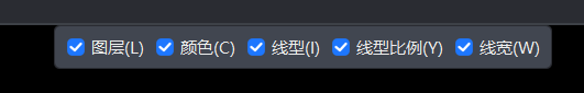 1.执行命令后,绘图区顶部弹出特性刷“设置栏”,如图10-5所示。在设置栏中,您可以勾选或取消勾选需要匹配的特性,包括“图层(L)”、“颜色(C)”、“线型(I)”、“线型比例(Y)”和“线宽(W)”。