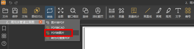 在顶部菜单栏中找到并点击【转换】工具,在下拉列表中选择【PDF转图片】功能。