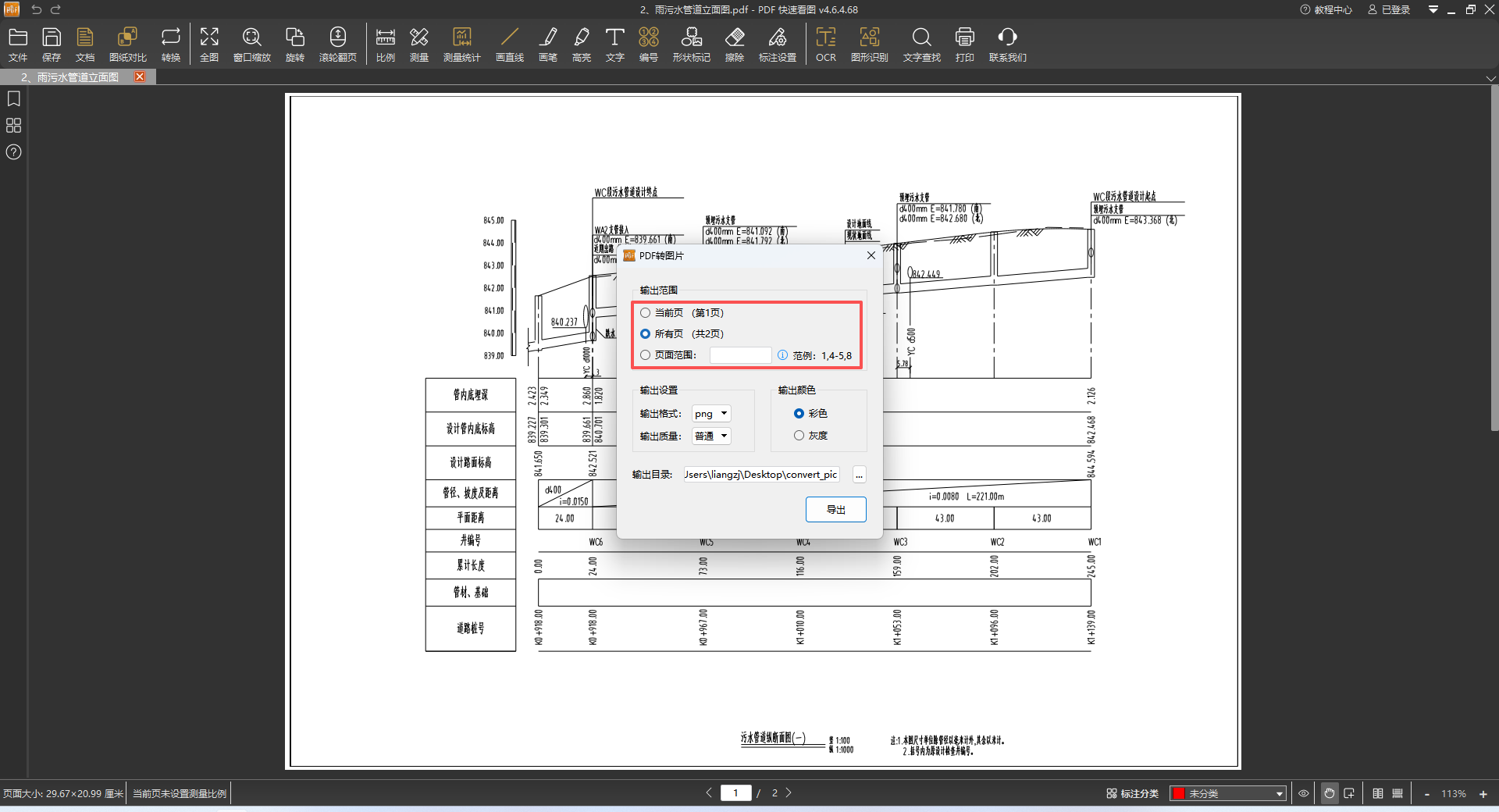 所有页:转换整个PDF文件的所有页面;