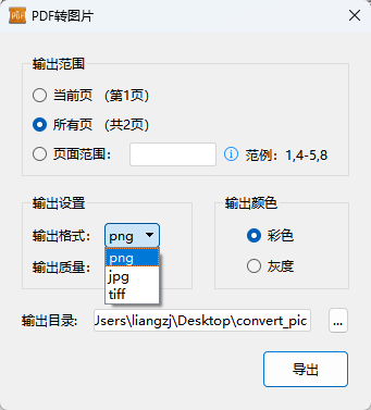 输出颜色:可选择【彩色】或【灰度】,灰度图能有效减小文件体积并适合某些特定场景。