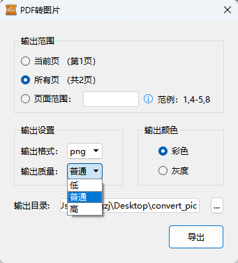 输出质量:可根据需求在【低】、【普通】、【高品质】之间切换,满足从快速传阅到印刷出版的不同要求。