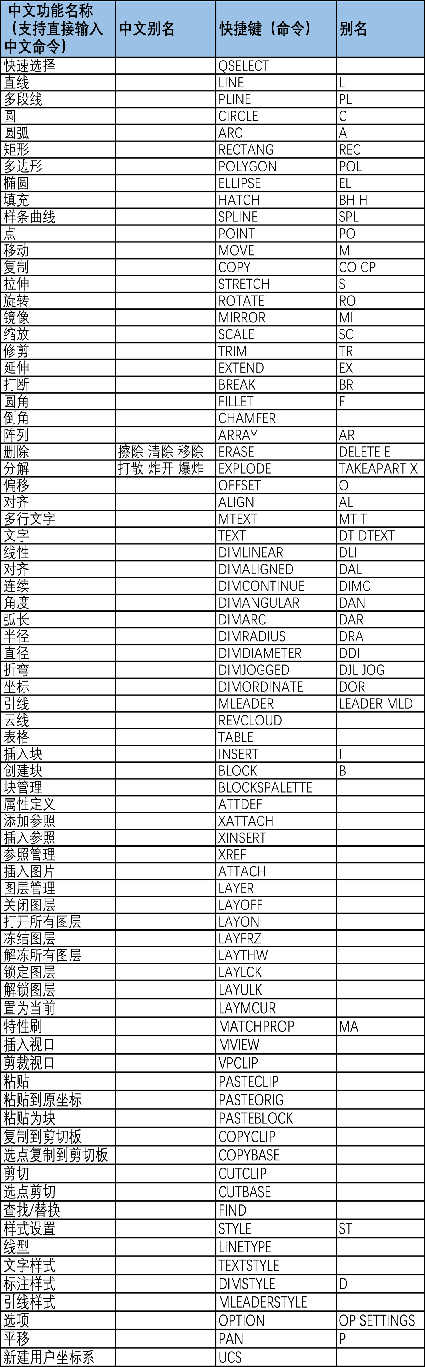 【鸿鹄CAD】鸿鹄CAD中英文快捷键(命令)汇总表
