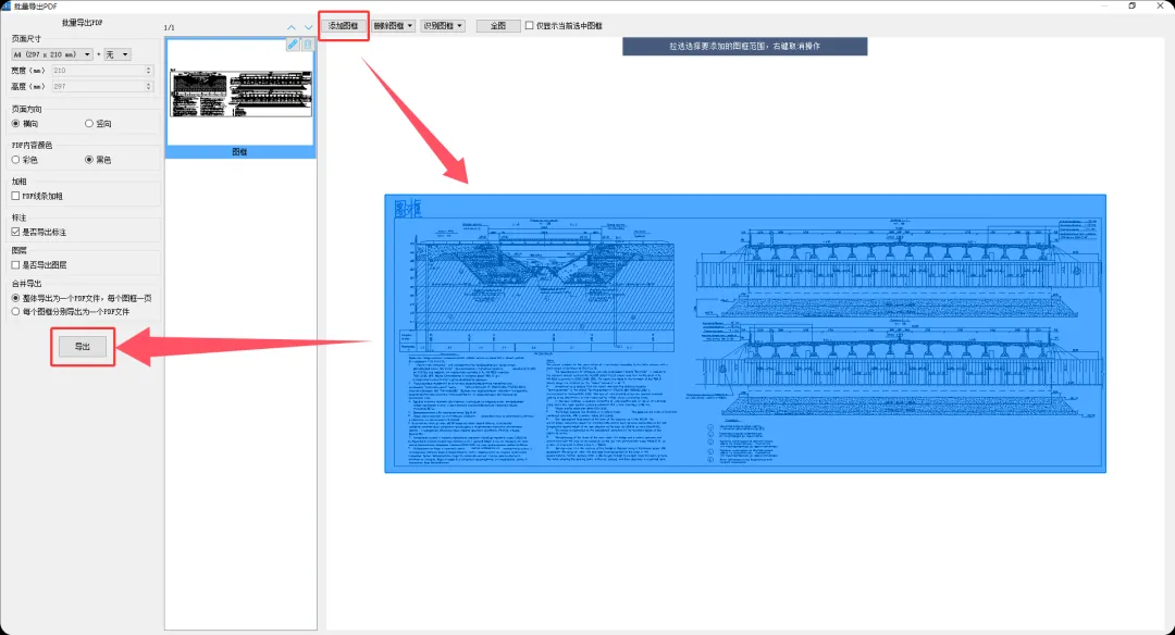 3.框选图纸范围,一键导出