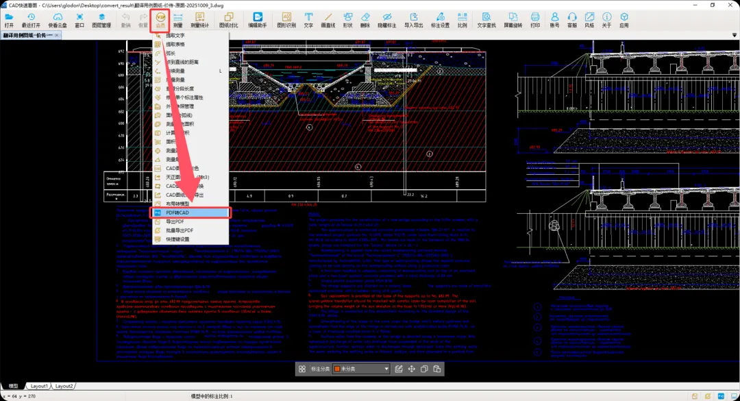 如需将翻译后的PDF转回CAD格式: