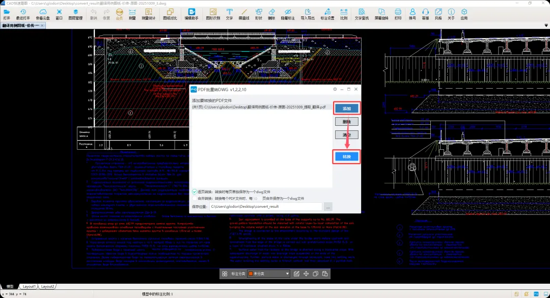 实测体验:即使是复杂的机械图纸或建筑详图,转换后所有线条、标注、图层都完美保留,为精准翻译奠定基础。