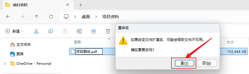 7、此时可能会弹窗重命名的确认弹窗,点击“是”: